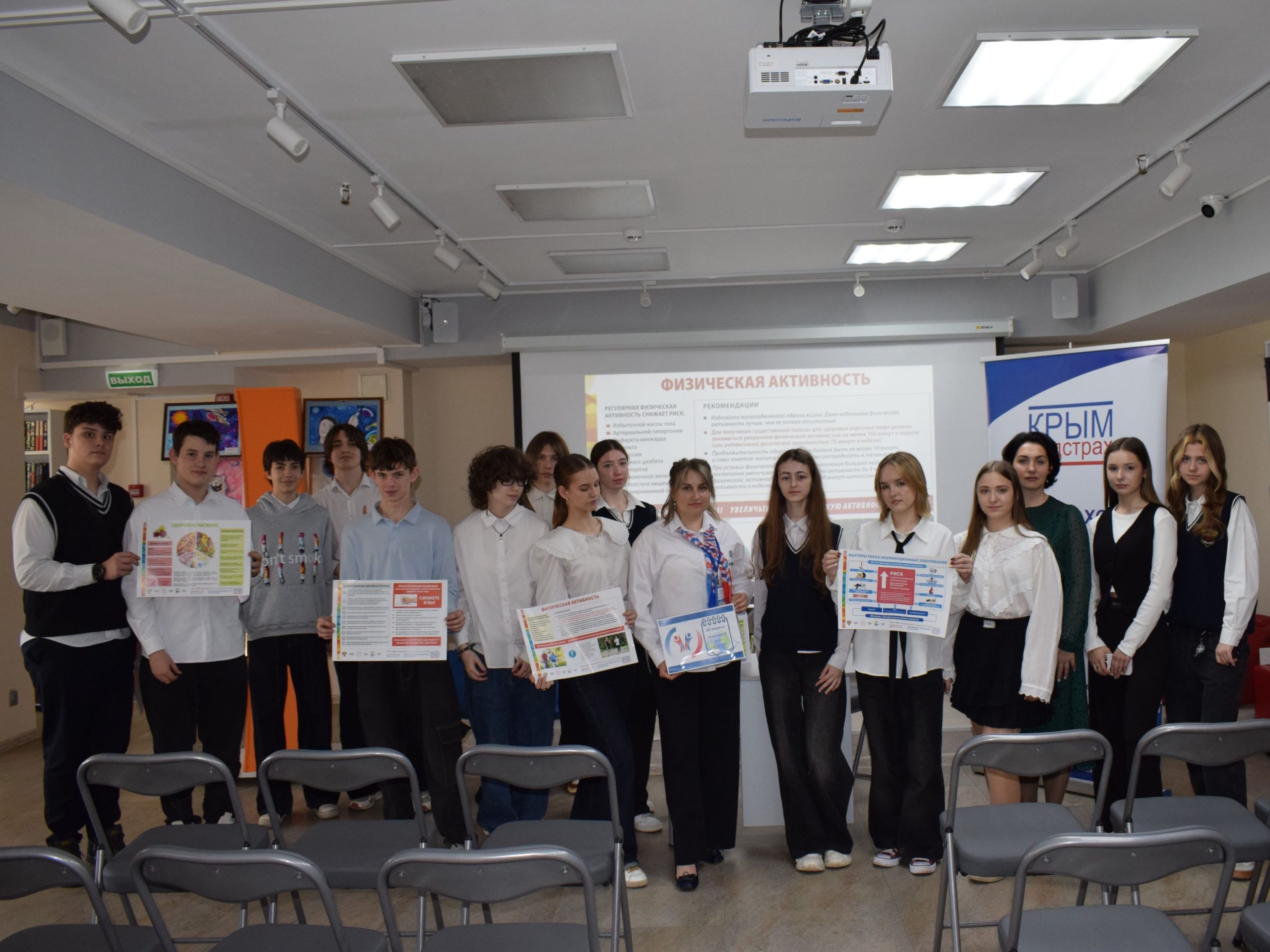 В г. Симферополе 6 апреля 2026 года страховой представитель «Крыммедстрах» Ольга Сливко провела для старшеклассников одной из крымских школ в читальном зале ГБУК РК «Крымская республиканская универсальная научная библиотека им. И. Я. Франко» лекцию на тему: «Здоровым быть здорово». Говорили о правильном питании, физической активности, вреде курения, факторах неинфекционных хронических заболеваний и прохождении профилактических осмотров.