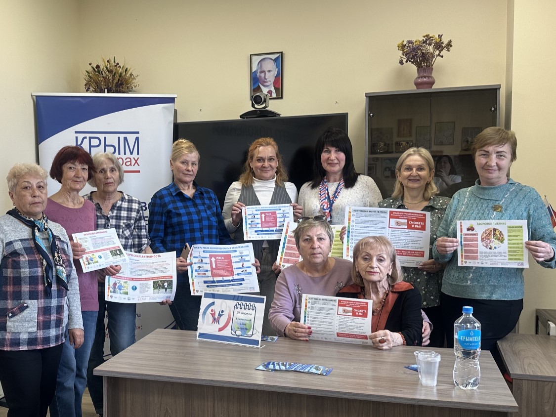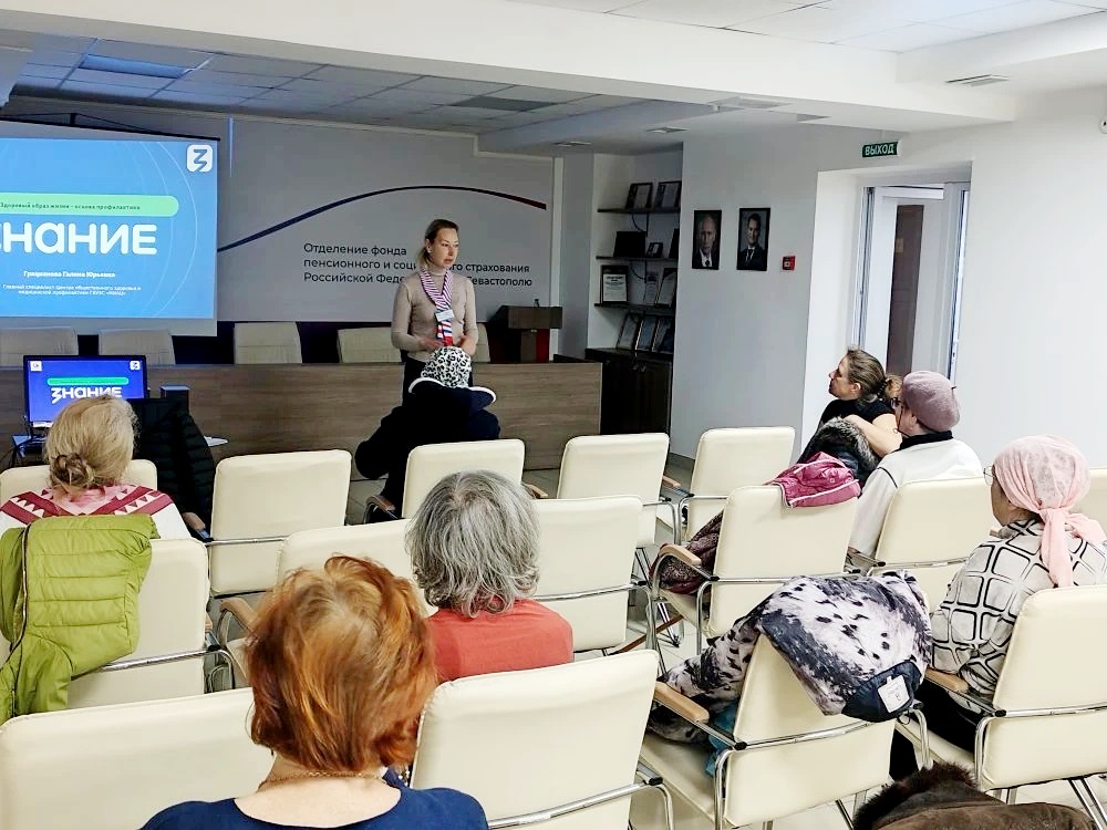 В «Центре общения старшего поколения» г. Севастополя для посетителей Социального фонда России прошла лекция о здоровом образе жизни, о факторах риска неинфекционных хронических заболеваний, которые вызывают сердечно-сосудистые и онкологические заболевания, о необходимости регулярных профилактических мероприятий.
