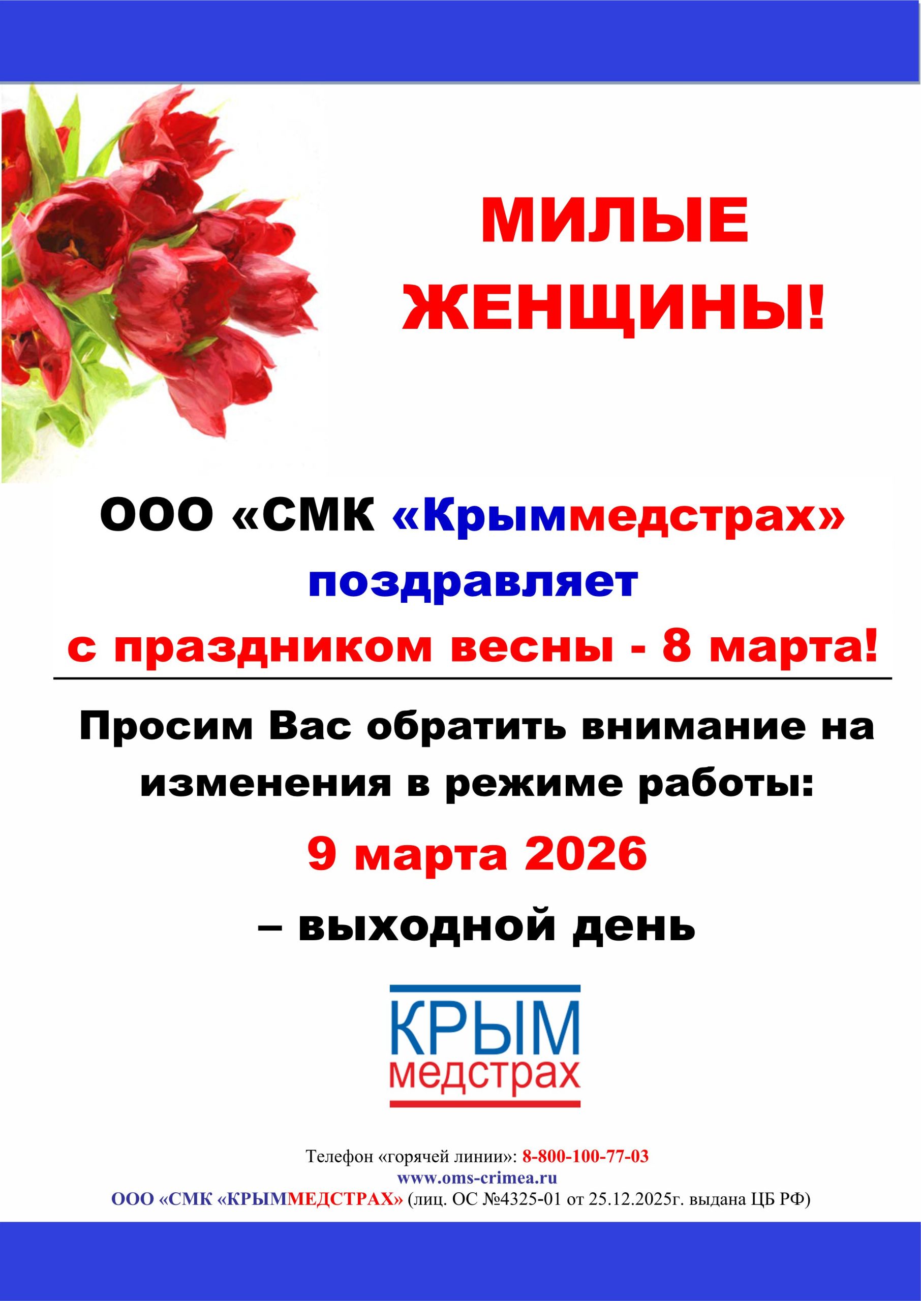 « График визитов страховых представителей Севастопольского филиала ООО «СМК «Крыммедстрах» на март 2026 года